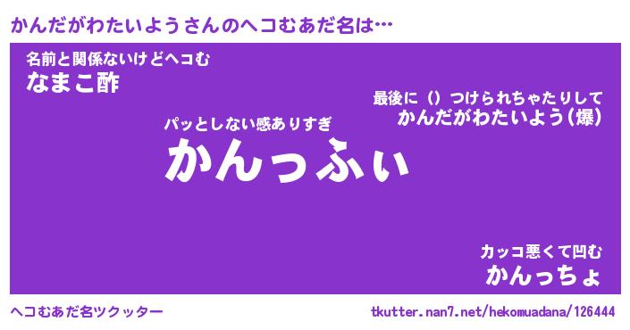 | 胡散臭い通販商品みたいなあだ名 | 『モテモテ間違いなし霊験あらたかなお札…その名も「かんだがわたいよう」』 |