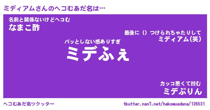 | ファンタジー風あだ名 | 『ミデフェル』『エターナルミディアムー』 |