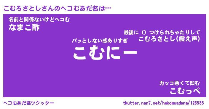| ポケモン風あだ名 | 『コムチュウ』『コムロダネ』 |