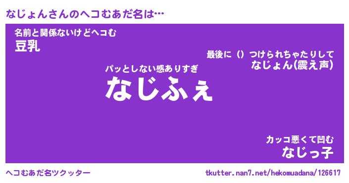 | 意味不明あだ名 | 『ペロリンなじょん』『永久保存なじょん』 |