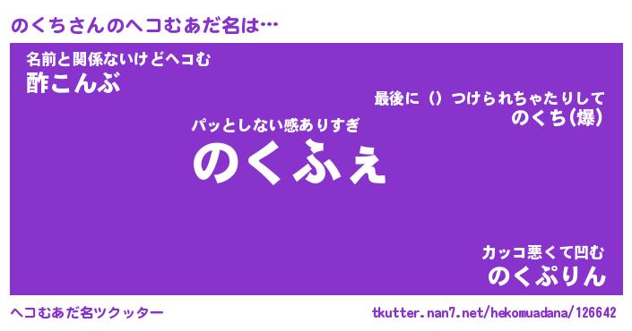 | ヒーロー風カッコイイあだ名 | 『スーパーノクチ』『ウルトラのくちマン』 |