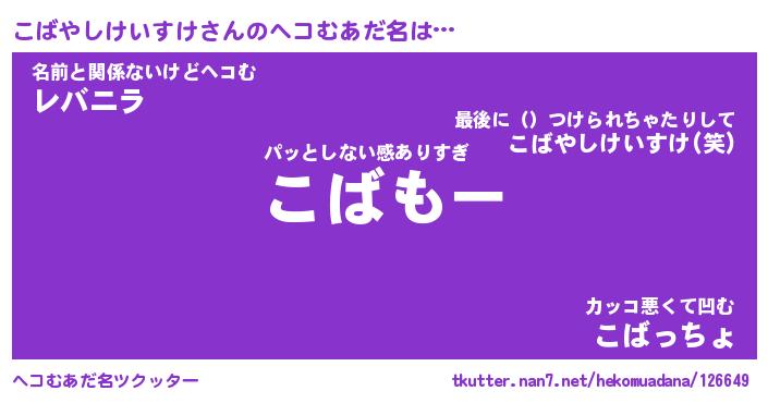 | 意味不明あだ名 | 『ペロリンこばやしけいすけ』 |