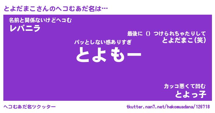 | ファンタジー風あだ名 | 『トヨフェル』『エターナルトヨダマコー』 |