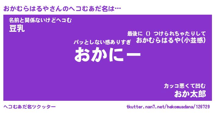 | 意味不明あだ名 | 『ペロリンおかむらはるや』 |