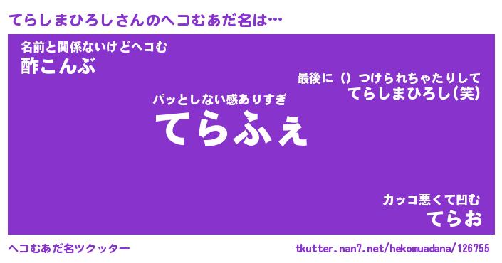 | 男性向けラノベタイトル風あだ名 | 『テラシマヒロシアートオンライン』 |