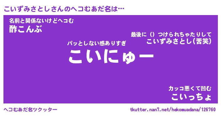 | 恥ずかしいあだ名 | 『プリティーこいずみさとし』『こいちん』 |