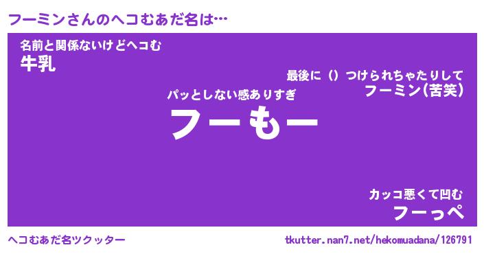 | 男性向けラノベタイトル風あだ名 | 『フーミンの憂鬱』 |