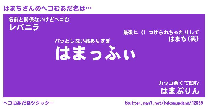| 意味不明あだ名 | 『ペロリンはまち』『はまちフォーエバー』 |