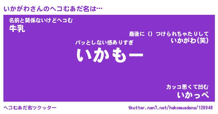 | ヒーロー風カッコイイあだ名 | 『スーパーイカガワ』『暗黒騎士イカ』 |