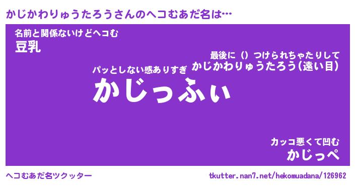| 胡散臭い通販商品みたいなあだ名 | 『モテモテ間違いなし霊験あらたかなお札…その名も「かじかわりゅうたろう」』 |