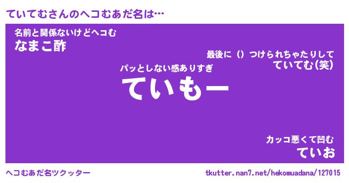 | 意味不明あだ名 | 『ペロリンていてむ』『永久保存ていてむ』 |