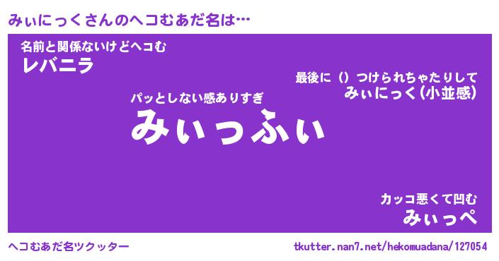 | ファンタジー風あだ名 | 『ミィフェル』『エターナルミィニックー』 |