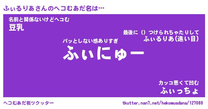 | ポケモン風あだ名 | 『フィチュウ』『フィルダネ』 |