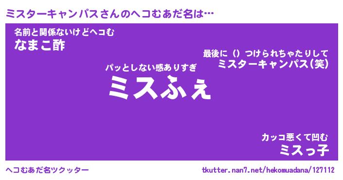 | 胡散臭い通販商品みたいなあだ名 | 『億万長者になれる水晶球…その名も「ミスターキャンパス」』 |