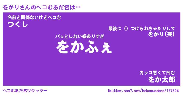 | ポケモン風あだ名 | 『ヲカチュウ』『ヲカリダネ』 |