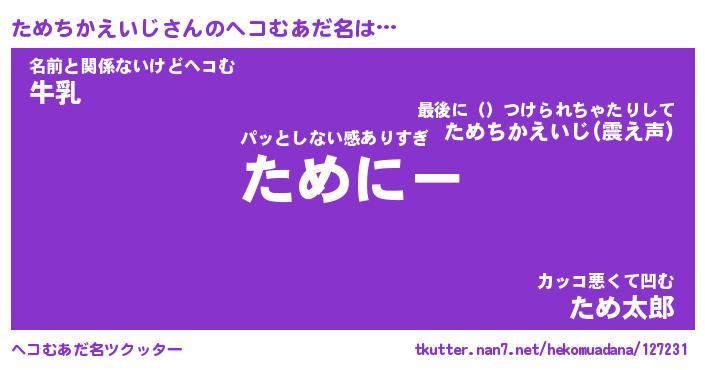 | 男性向けラノベタイトル風あだ名 | 『ためちかえいじの憂鬱』 |