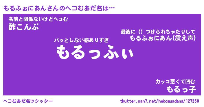 | 恥ずかしいあだ名 | 『プリティーもるふぉにあん』『もるちん』 |
