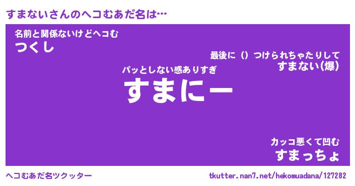 | 意味不明あだ名 | 『ペロリンすまない』『永久保存すまない』 |