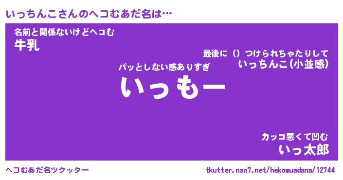| 男性向けラノベタイトル風あだ名 | 『いっちんこの憂鬱』 |