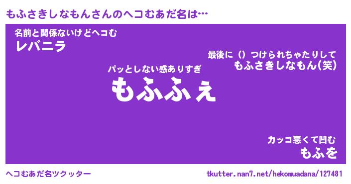 | 胡散臭い通販商品みたいなあだ名 | 『モテモテ間違いなしブレスレット…その名も「もふさきしなもん」』 |