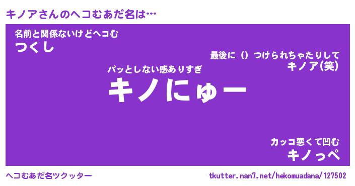 | 2回繰り返すあだ名 | 『キノキノ』『キキノノ』 |
