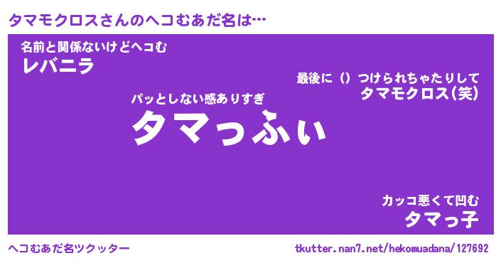 | 恥ずかしいあだ名 | 『プリティータマモクロス』『タマっちょ』 |