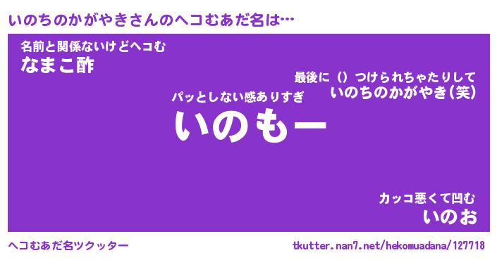 | ポケモン風あだ名 | 『イノチュウ』『イノチダネ』 |