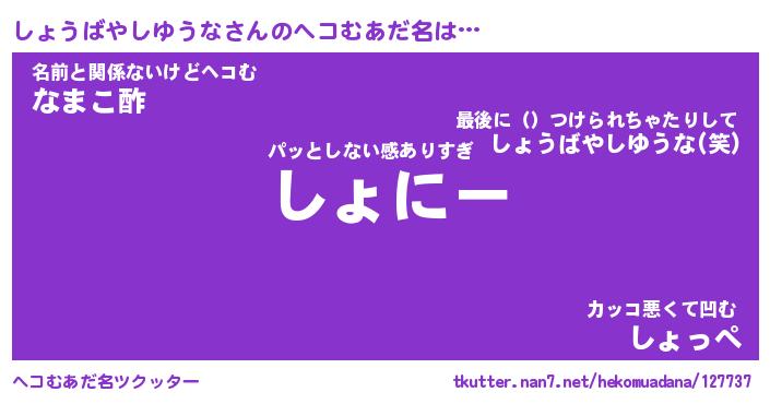 | ヒーロー風カッコイイあだ名 | 『スーパーショウバヤシユウナ』 |