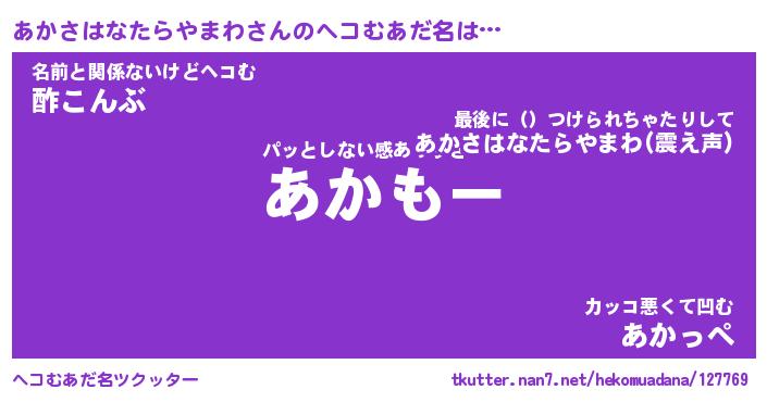 | ヒーロー風カッコイイあだ名 | 『スーパーアカサハナタラヤマワ』 |