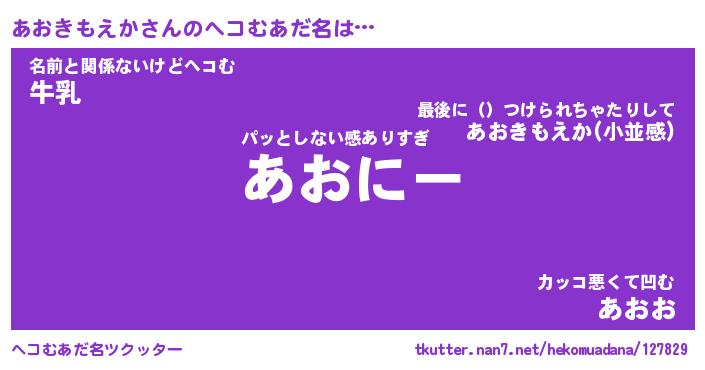 | ヒーロー風カッコイイあだ名 | 『スーパーアオキモエカ』『暗黒騎士アオ』 |