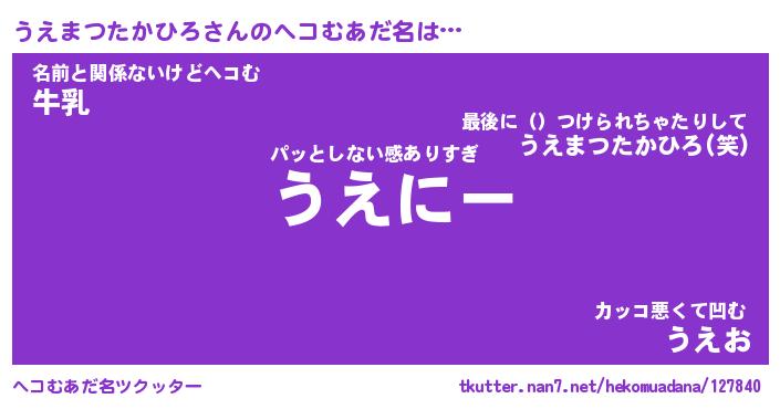 | 男性向けラノベタイトル風あだ名 | 『うえまつたかひろの憂鬱』 |