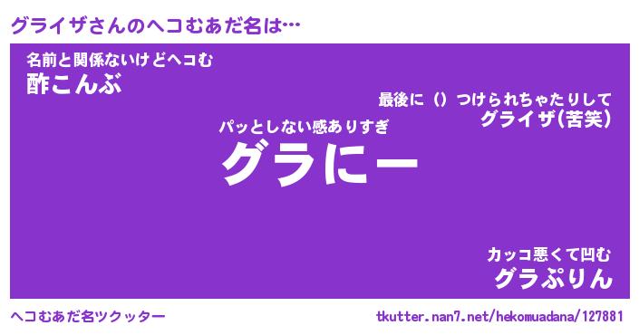 意味不明あだ名 | 『ペロリングライザ』『永久保存グライザ』 |