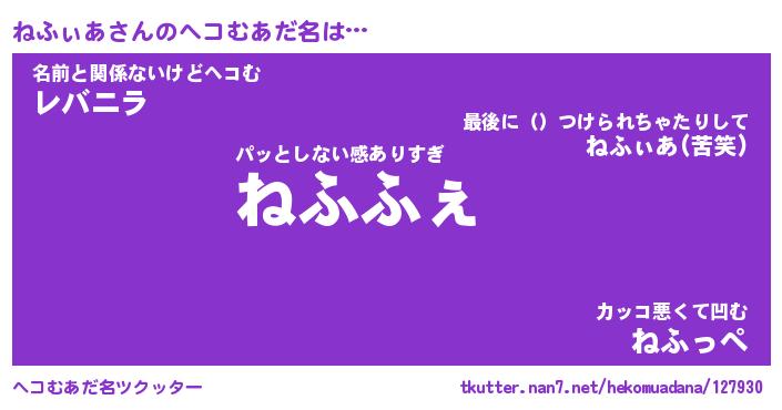 | 意味不明あだ名 | 『ペロリンねふぃあ』『永久保存ねふぃあ』 |