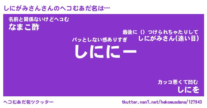 | 料理風あだ名 | 『ほっこり♪しにがみさんの味噌そぼろ煮』 |