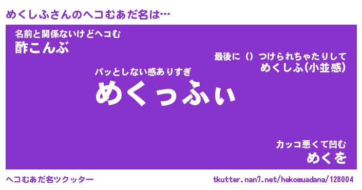 | 意味不明あだ名 | 『ペロリンめくしふ』『永久保存めくしふ』 |