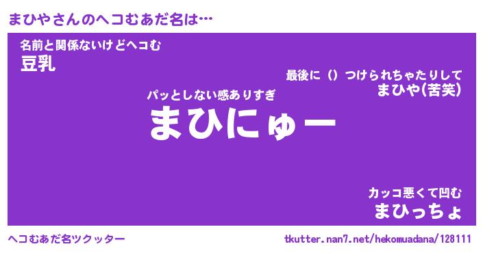 | 2回繰り返すあだ名 | 『まひまひ』『ままひひ』『ぬらぬら』 |