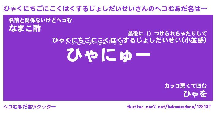 | 2回繰り返すあだ名 | 『ひゃひゃ』『ひひゃゃ』『がたがた』 |