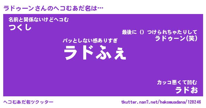 | ファンタジー風あだ名 | 『ラドフェル』『エターナルラドゥーンー』 |