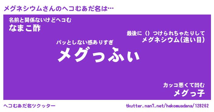 | ヒーロー風カッコイイあだ名 | 『スーパーメグネシウム』『暗黒騎士メグ』 |
