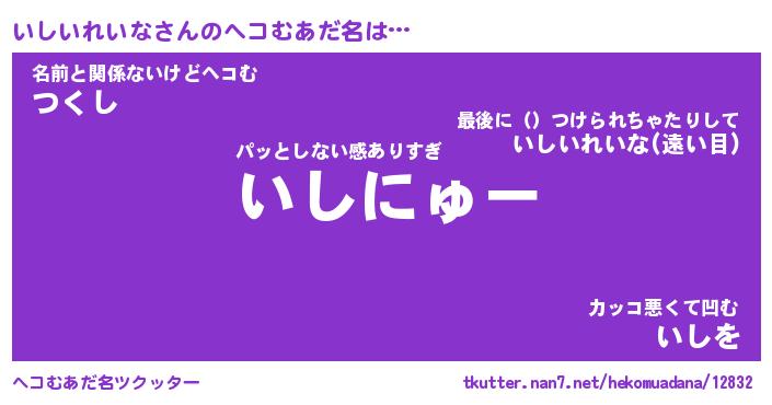 | 2回繰り返すあだ名 | 『いしいし』『いいしし』『ぷーぷー』 |