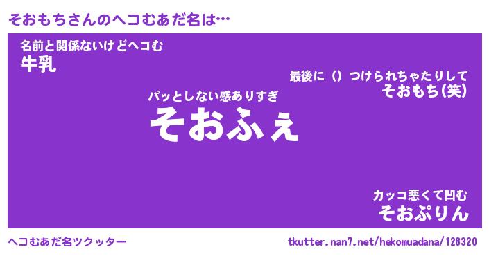 | ファンタジー風あだ名 | 『ソオフェル』『エターナルソオモチー』 |