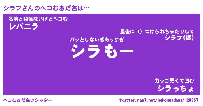 | ファンタジー風あだ名 | 『シラフェル』『エターナルシラフー』 |