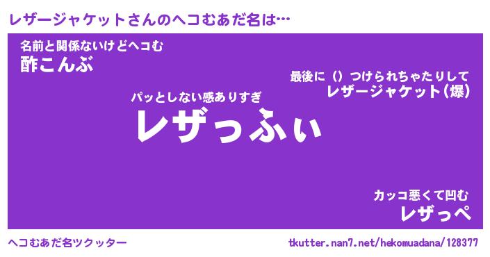 | 2回繰り返すあだ名 | 『レザレザ』『レレザザ』『ぬらぬら』 |