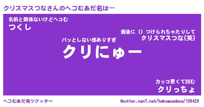 | 意味不明あだ名 | 『ペロリンクリスマスつな』 |