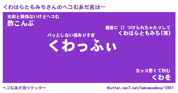 | 肩書あだ名 | 『くわはらともみち御曹司』 |