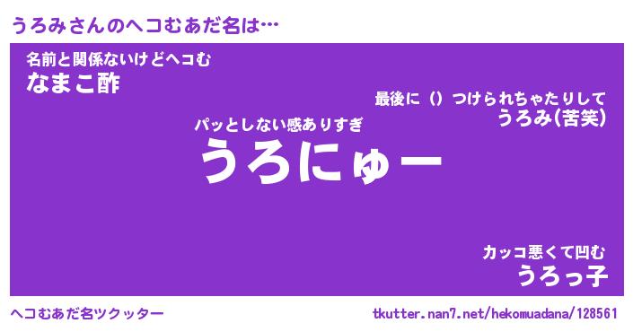 | 2回繰り返すあだ名 | 『うろうろ』『ううろろ』『ぬぷぬぷ』 |