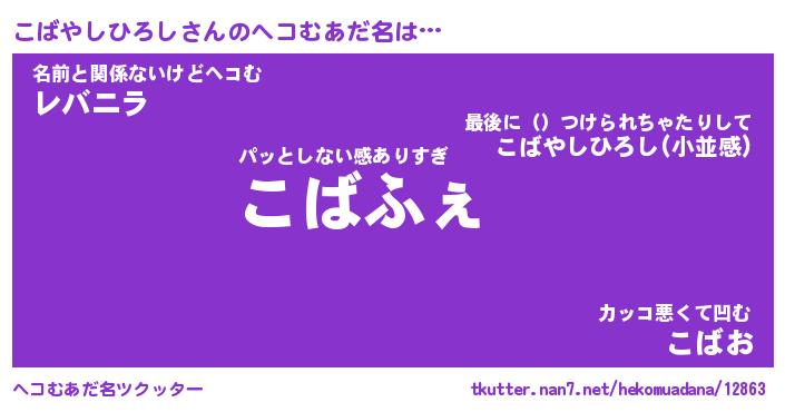 | ポケモン風あだ名 | 『コバチュウ』『コバヤダネ』 |