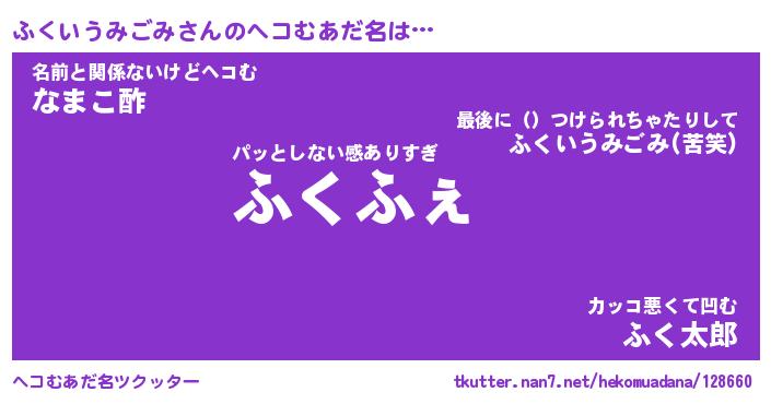 | ヒーロー風カッコイイあだ名 | 『スーパーフクイウミゴミ』 |