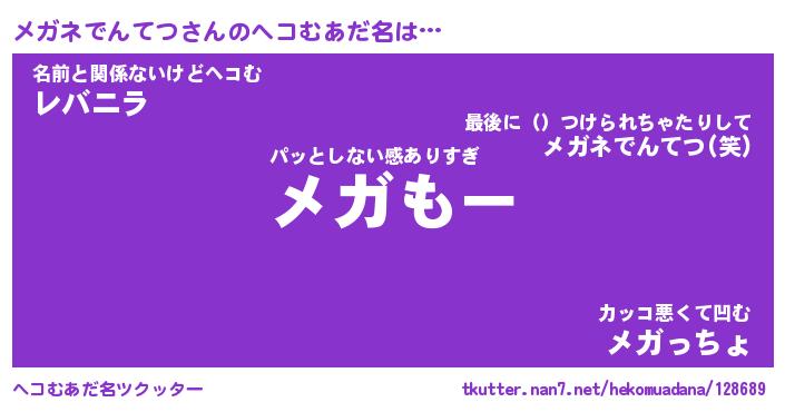 | 2回繰り返すあだ名 | 『メガメガ』『メメガガ』『ぐるぐる』 |