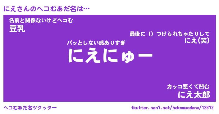 | ポケモン風あだ名 | 『ニエチュウ』『ニエダネ』『ヒニエ』 |